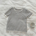 Muzi 18 mùa hè bé màu xanh đen và trắng mô hình cơ bản một tay không phải là quá nhiều! Áo len sọc ngắn tay áo phông rộng