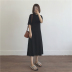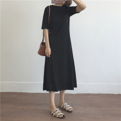 Muzi18 春 đơn giản và dễ dàng để mặc bông đầm dài váy ngắn ba màu sắc vào đàn hồi eo mỏng một từ váy đầm dạ hội