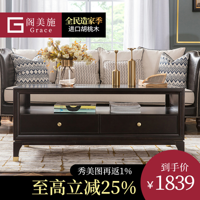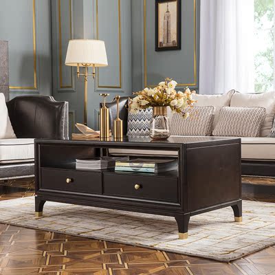 Mỹ sang trọng gỗ ánh sáng hiện đại bàn cà phê nhỏ gọn đồ nội thất phòng khách hình chữ nhật kết hợp của đôi bơm óc chó màu đen - Bàn trà bàn sofa chân sắt Bàn trà