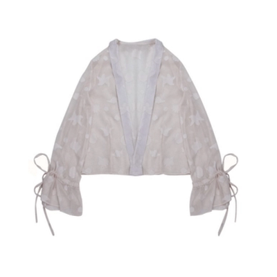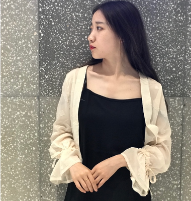 Nai 18 mùa xuân của phụ nữ cái nhìn mới ren cardigan đèn lồng tay áo voan áo sơ mi lỏng khăn choàng áo khoác biển sâu chọn vỏ thoi trang cong so