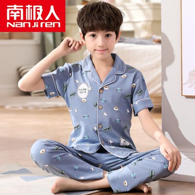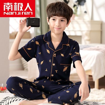 Nam Cực vào mùa xuân và mùa hè bé trai tuổi teen học sinh trung học cơ sở trong bộ đồ ngủ cotton ngắn tay tracksuit quần Zhongda boy quần áo trẻ em hàn quốc Phù hợp với trẻ em