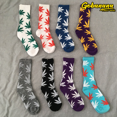 [Năm đôi] vớ trượt ván, vớ đáy khăn, miệng ống bó, lá gai, thể thao, đường phố Mỹ - Vớ thể thao tất đen Vớ thể thao