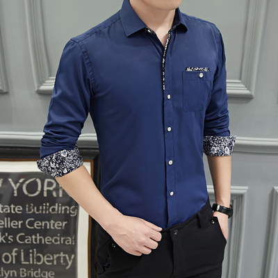 Nam Xiang mùa thu mới nam dài tay áo mỏng cơ sở kinh doanh giản dị hoang dã áo sơ mi trắng hoa inch áo sơ mi dài