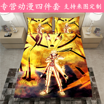 Naruto Hinata gia đình bốn tấm được trang bị xung quanh phần tử thứ hai của ký túc xá sinh viên hình ảnh động đơn chăn quilt ga giường thun lạnh Khăn trải giường