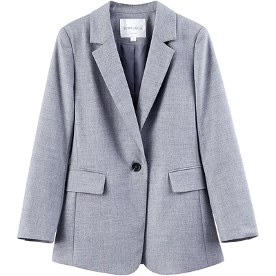 [New giá 179 nhân dân tệ] 2018 phụ nữ mới của mùa xuân áo khoác khí màu xám dài tay giản dị phù hợp với nhỏ phù hợp với vest kẻ nữ Business Suit