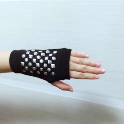 New không chính thống đinh tán điều khiển ngón fingerless găng tay ngắn ngoài trời knit cotton găng tay màu đen thủy thủ khiêu vũ găng tay tĩnh điện Găng tay