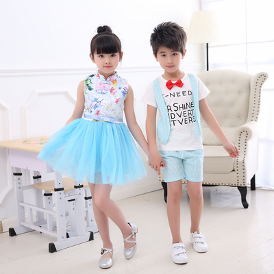 Ngày của trẻ em điệp khúc trang phục chàng trai và cô gái phun công chúa váy đồng phục học sinh mẫu giáo quần áo trẻ em hiệu suất quan ao tre em