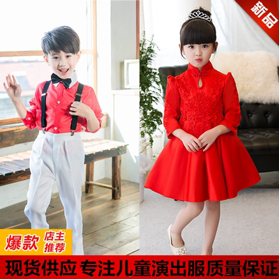 Ngày đầu năm mới trẻ em công chúa đỏ ăn mặc trang phục học sinh tiểu học và trung học hợp xướng cô gái sân khấu guzheng biểu diễn quần áo thời trang trẻ em Váy trẻ em