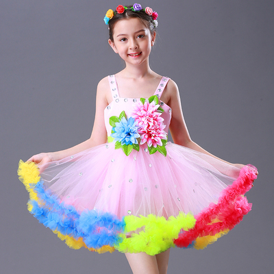 Ngày thiếu nhi Trang phục thiếu nhi Cô gái Trang phục khiêu vũ Váy công chúa Fluffy Váy đầy màu sắc Mẫu giáo Hợp xướng Trang phục biểu diễn - Trang phục quần áo trẻ con