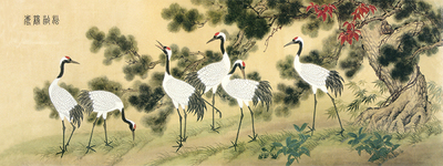 Nghệ thuật thêu cổ nổi tiếng Su thêu tự làm kit thêu tranh trang trí để gửi người lớn tuổi Song Ling Heshou HD map 30 * 80CM tranh thêu non nước hữu tình Bộ dụng cụ thêu