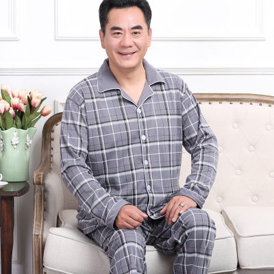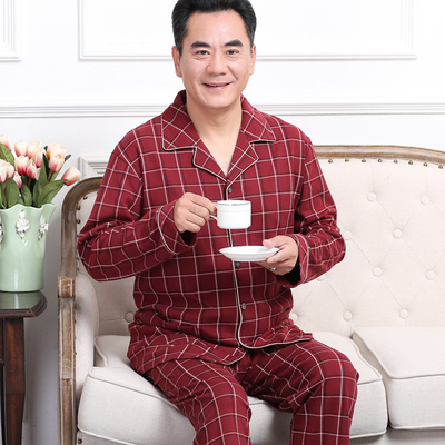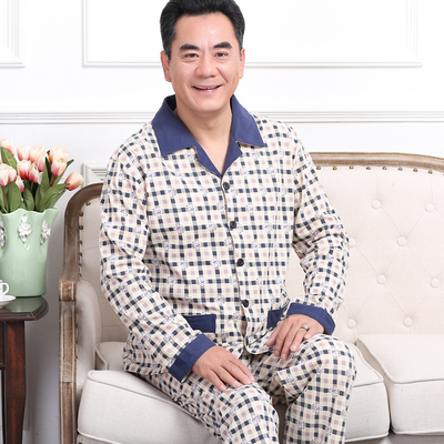 Người đàn ông trung niên bộ đồ ngủ cotton cotton dài tay cộng với phân bón XL set đồ cao cấp cotton phù hợp với mùa thu đồ bộ mặc nhà Nam giới