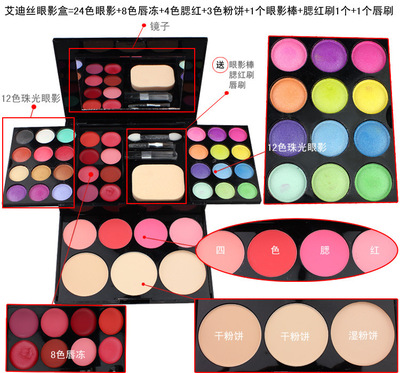 Người mới bắt đầu Mỹ phẩm Mỹ phẩm Trang Điểm Set One Set Full Kết hợp Powder Eye Shadow Blush Trẻ em Giai đoạn Pearlescent 39 Màu phan mat