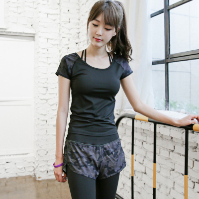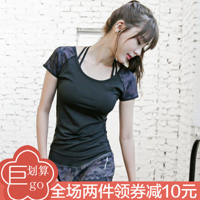 Ngụy trang khâu vai tốc độ chạy yoga thể dục thể thao giải trí hoang dã áo T-Shirt kích thước lớn nữ cổ tròn ngắn tay áo áo tank top gym