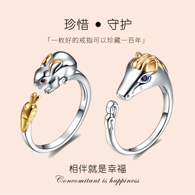 Nguyên bản s925 sterling bạc cặp vợ chồng nam nữ nhẫn mở vòng tiếp sức nhẫn nhẫn chuột thỏ lợn hổ rồng rắn mẫu nhẫn cưới đẹp 2020 Nhẫn