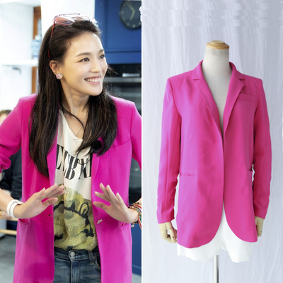 Nhà hàng trung quốc Shu Qi với một phù hợp với nhỏ nữ Hàn Quốc phiên bản của hoa hồng đỏ dài tay lỏng hoang dã giản dị phù hợp với áo khoác áo sơ mi bộ vest nữ quần lửng