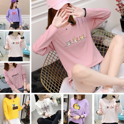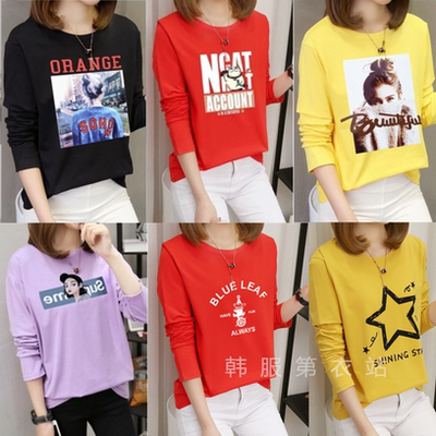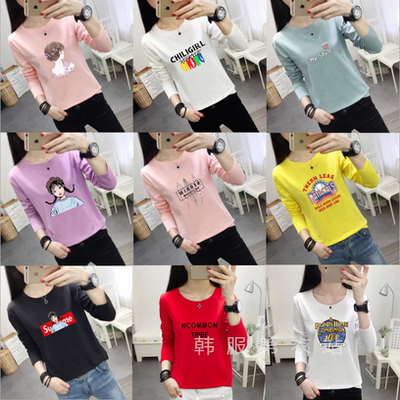 Nhà máy bán buôn trực tiếp gian hàng cung cấp mùa thu mới cho phụ nữ áo thun dài tay áo sơ mi nữ lỏng lẻo - Áo phông áo phông kẻ ngang nữ Áo phông