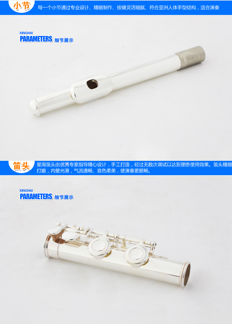 Nhạc cụ sáo Xinghai người mới bắt đầu học sinh kiểm tra tổng quát chuyên nghiệp 16 lỗ C có thể điều chỉnh được mạ bạc nhạc cụ phương Tây - Nhạc cụ phương Tây trống da Nhạc cụ phương Tây
