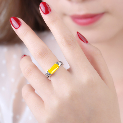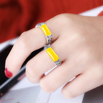 Nhẫn bạc 925 trống rỗng hỗ trợ dát sáp ong màu ngọc lam nhẫn nhẫn hỗ trợ nam và nữ hỗ trợ nhẫn đôi nhan nam Nhẫn