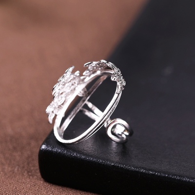 Nhẫn bằng bạc 925 mạ vàng trống rỗng thiết lập nhẫn bằng bạc khảm sáp ong vòng hổ phách mặt nhẫn mở 19 * 30 cài đặt - Nhẫn nhẫn đôi đẹp