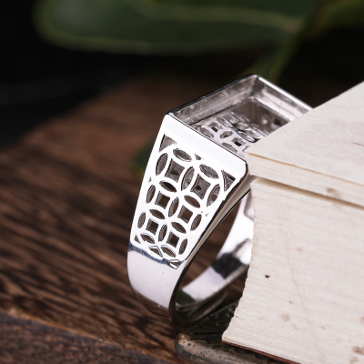 Nhẫn bằng bạc trắng mạ bạc 925 khung trống hình vuông màu ngọc lam thiết lập sáp ong vòng hỗ trợ cổng 11 * 16 9.5 * 14.4 nhẫn cặp bạc Nhẫn