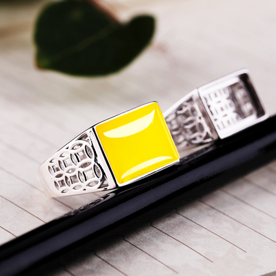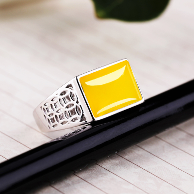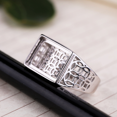 Nhẫn bằng bạc trắng mạ bạc 925 khung trống hình vuông màu ngọc lam thiết lập sáp ong vòng hỗ trợ cổng 11 * 16 9.5 * 14.4 nhẫn cặp bạc