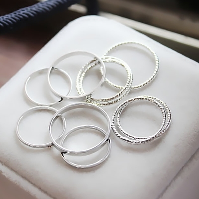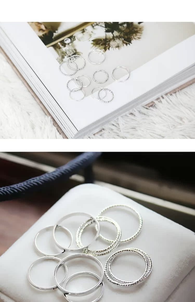 Nhẫn mười mảnh mới Nhật Bản và Hàn Quốc Phụ nữ đơn giản nhẫn thủy triều kết hợp người nhẫn nhẫn nhẫn nhẫn trang sức nhẫn bạc nữ