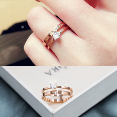 Nhẫn ngón tay nữ bằng thép 18K bằng titan không phai màu Nhật Bản và Hàn Quốc tăng vàng mạng lưới đỏ thời trang La Mã cá tính nữ nhẫn lông voi nam