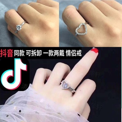 Nhẫn rung của S925 sterling bạc ròng đỏ với cùng một bộ kim cương xoay vòng nữ có thể xoay mở để chạy nhẫn kim cương nhẫn cưới pnj