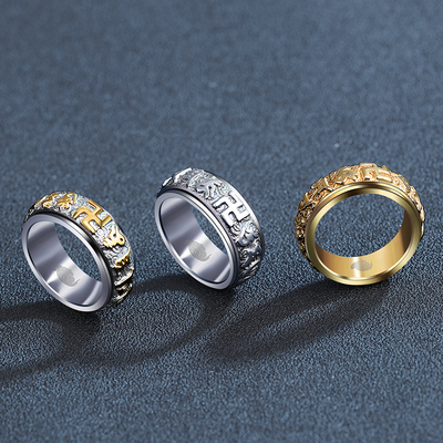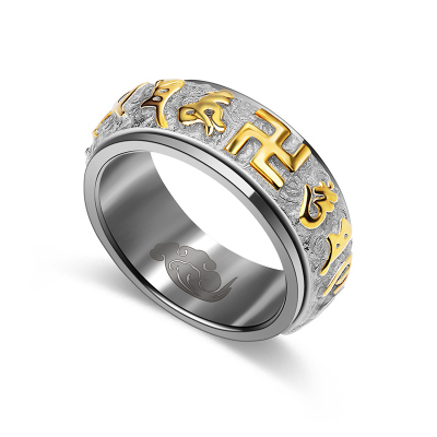 Nhẫn thần chú sáu chữ bằng thép titan nam độc đoán nam độc thân hipster Phiên bản Hàn Quốc của ngón trỏ sáng tạo nhẫn nhẫn chữ cái chữ nhẫn cưới vàng tây