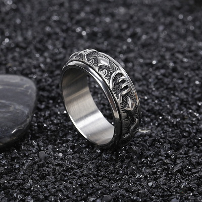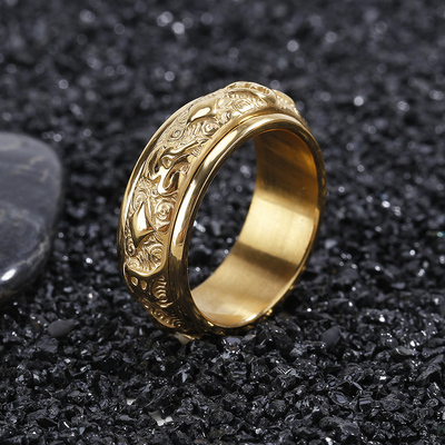 Nhẫn thần chú sáu chữ khí quyển có thể được xoay vòng bằng thép titan trang sức nam hipster nhẫn sáng tạo chữ miễn phí nhẫn cưới kim cương