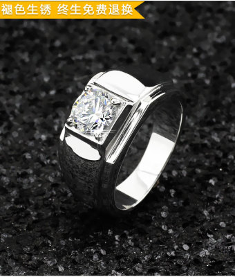 Nhẫn thời trang nam mô phỏng kim cương Phiên bản Hàn Quốc của thủy triều không phai màu nhẫn thép titan Đàn ông nhẫn cưới chữ bạch kim nhẫn đeo ngón út