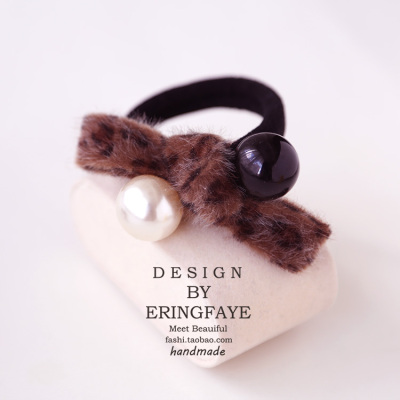 Nhẫn tóc đuôi ngựa Trẻ em có thể được sử dụng bởi người lớn. Ngọc trai da báo màu thấp phù hợp với mùa thu đông phụ kiện tóc hàn quốc