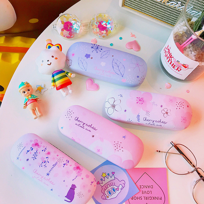 Nhật Bản cô gái hồng phim hoạt hình hộp nhỏ hoa tươi sinh viên nữ khung cận thị kính lưu trữ hộp chống rơi áp lực - Kính khung mắt kính gucci
