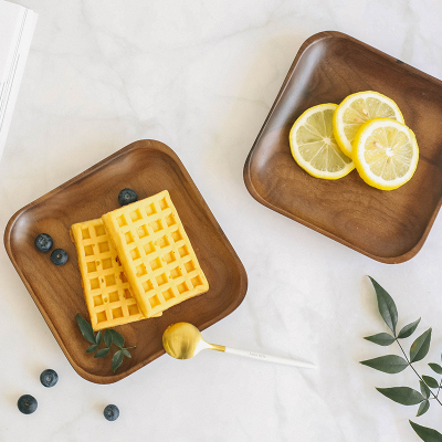 Nhật bản Đen Walnut Elm Tấm Vuông Tấm Vuông Đồ Ăn Nhẹ Trái Cây Món Ăn Bằng Gỗ Tráng Miệng Tấm Ăn Sáng Tấm Rắn Gỗ Bộ Đồ Ăn đũa gỗ cẩm lai Tấm