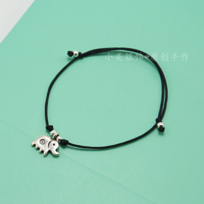 Nhật Bản S925 sterling bạc voi đơn giản thời trang sinh viên vòng chân dây ngọt ngào dễ thương dây đỏ cá tính vòng chân