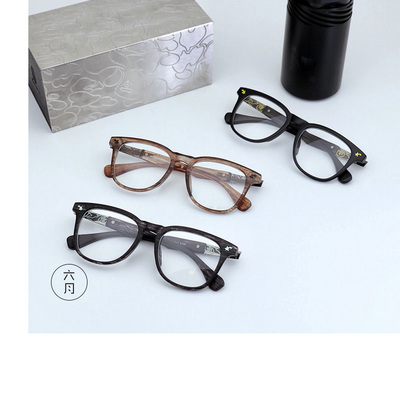 Nhật Bản Tide retro sọ đầu gỗ hạt sét sao đinh tán hộp tròn kính phẳng có thể được trang bị cận thị mắt kính điện biên phủ