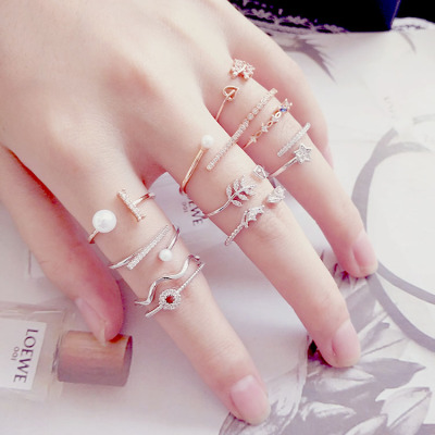 Nhật Bản và Hàn Quốc cá tính ngón tay lạnh ngón trỏ nhỏ ngón tay màu khớp màu mở vòng đuôi nhẫn nữ thủy triều nhẫn sinh viên trang sức nhẫn cưới pnj