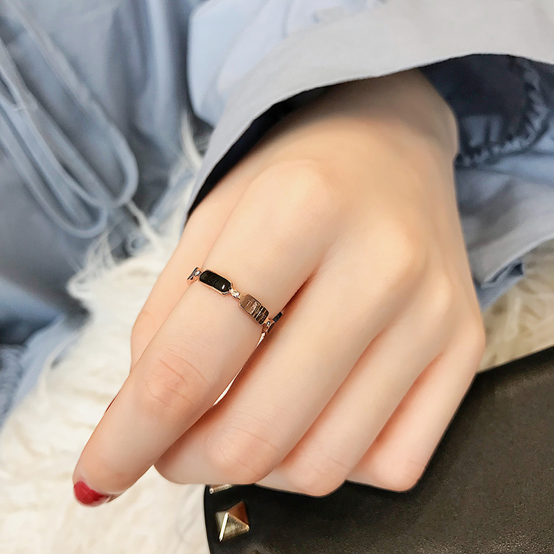 Nhật Bản và Hàn Quốc thời trang màu đen tinh tế nhẫn nữ cá tính thủy triều người chỉ số nhẫn nhẫn titan thép mạ vàng hồng trang sức nhẫn cưới Nhẫn