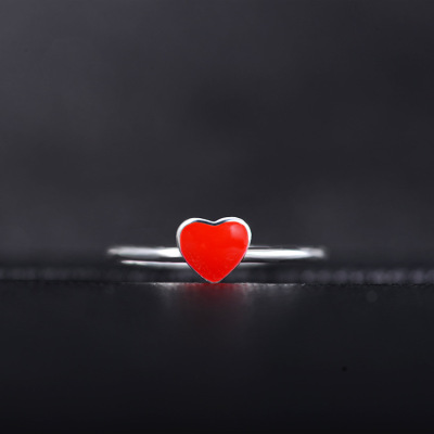 Nhật Bản và Hàn Quốc thời trang mới nhẫn bạc nữ gió Hàn Quốc mở vòng điều chỉnh hình trái tim tình yêu màu đỏ đào trái tim trang sức nhẫn lông voi nam
