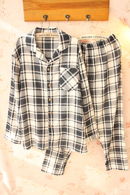 Nhật đơn giản! Đồ ngủ nam mùa thu kẻ sọc dài tay hai mảnh phù hợp với bông gạc đôi dịch vụ nhà lỏng bộ quân áo ngủ nam