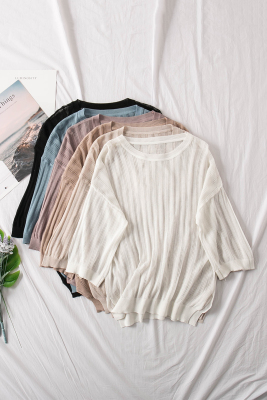 Nhỏ bảy ngôi nhà! 2018 mùa hè mới màu rắn vòng cổ cardigan tay áo lỏng rỗng áo len ngắn cardigan nữ
