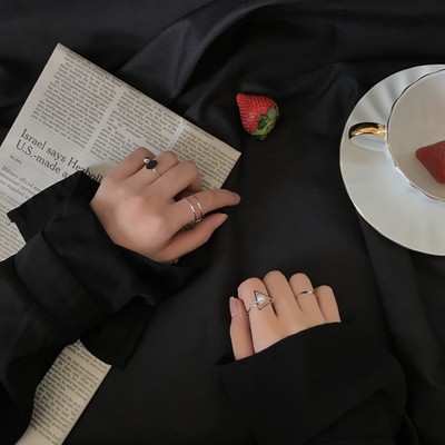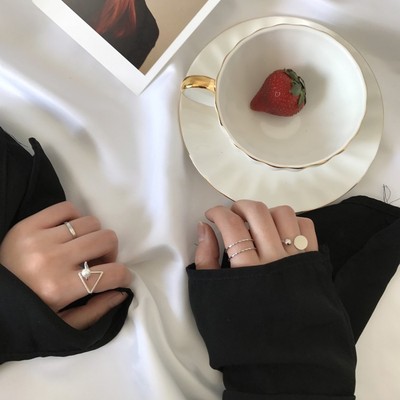 Nhóm nhẫn kim loại nữ kết hợp hipster Nhật Bản và Hàn Quốc thiết lập đơn giản hình tam giác ngọc trai mở nhẫn phụ kiện J006 nhẫn đeo ngón út