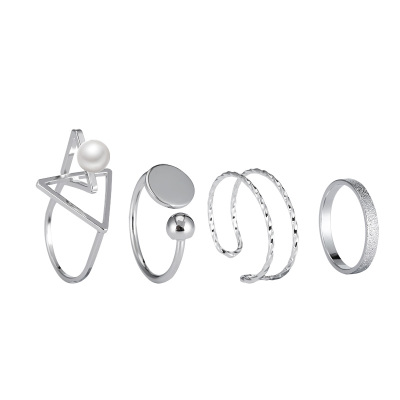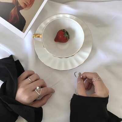 Nhóm nhẫn kim loại nữ kết hợp hipster Nhật Bản và Hàn Quốc thiết lập đơn giản hình tam giác ngọc trai mở nhẫn phụ kiện J006 nhẫn đeo ngón út Nhẫn
