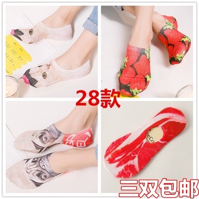 Nông cạn tất vô hình Cặp đôi mùa xuân và mùa hè Mô hình in 3D Bụng thịt lợn Vớ cotton trượt silicone set tất noel