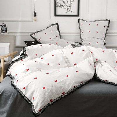 Nordic đơn giản dễ thương công chúa phong cách bông rửa sạch bông tua denim in giường bông chăn - Bộ đồ giường bốn mảnh chăn ga forever