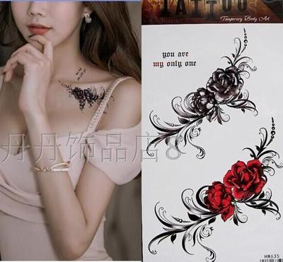 Nữ hình xăm không thấm nước sticker đen red rose painted hình xăm cơ thể Hàn Quốc dán đầy đủ gửi hình dán xăm