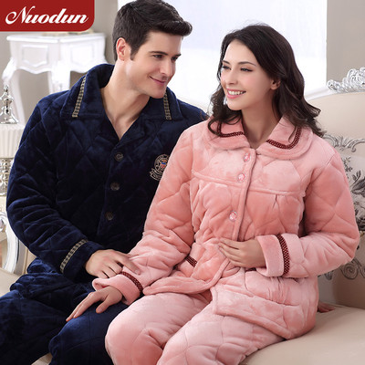 Nuo lá chắn vài bộ đồ ngủ nam và nữ mùa đông dày ba lớp đồ ngủ bằng vải flannel san hô nhung có thể được mặc bên ngoài bông kích thước lớn những kiểu đồ bộ đẹp Cặp đôi