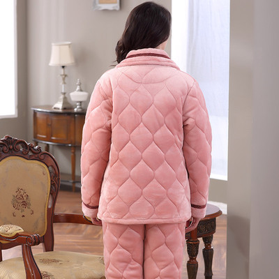 Nuo lá chắn vài bộ đồ ngủ nam và nữ mùa đông dày ba lớp đồ ngủ bằng vải flannel san hô nhung có thể được mặc bên ngoài bông kích thước lớn những kiểu đồ bộ đẹp