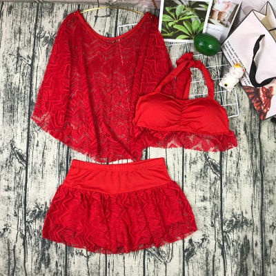 Nước hoa chia nhỏ áo tắm nữ ba mảnh gợi cảm giảm béo bụng váy kiểu phẳng góc bảo thủ rắn màu áo tắm nóng mùa xuân bikini 2 mảnh màu đỏ