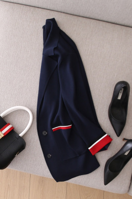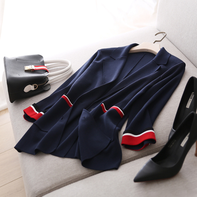 Nước ngoài không khí đi lại ~ 2018 mùa xuân màu sắc mới tương phản bên phù hợp với phong cách đan áo len nữ bảy- điểm tay áo người Anh mỏng áo áo khoác len mỏng